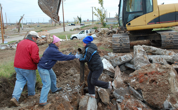 United Methodist Church volunteers clear debris for an uninsured homeowner.