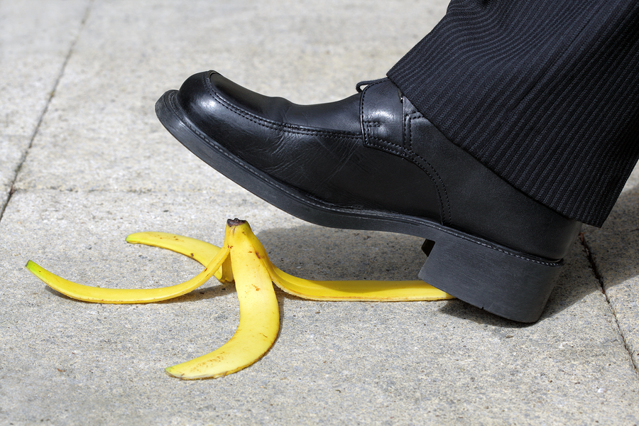 Surveillance video shows Owens dropping a banana peel, stepping on it as the elevator door opens, then appearing to thrust himself forward and falling to the ground.