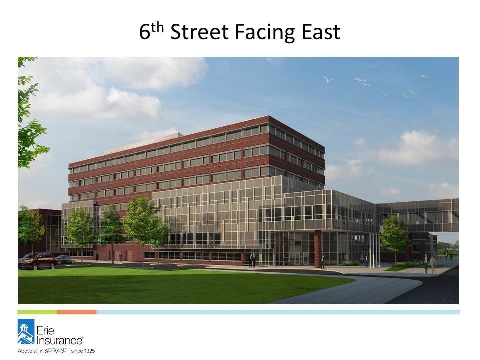 Executives of Erie Indemnity Company announced the construction of a new office building on the Erie Insurance Home Office campus in downtown Erie, Pa. The 346,000 square foot building will be located on East Sixth Street next to the historic Erie Insurance Heritage Center and extending to East Seventh and French Streets. Total building and related project costs are estimated to be $135 million. Construction is expected to begin in spring 2017, lasting about three years.