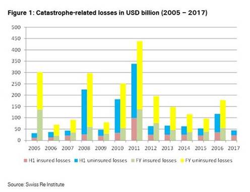 A high number of smaller storms and other weather events (like floods) in the US in the first six months of 2017 led to insured losses of around $16 billion out of the overall $23 billion in insured losses. “Fortunately, in the US, most households and businesses are insured against wind risk so they are financially protected when severe storms strike,” said Swiss Re’s Chief Economist Kurt Karl.