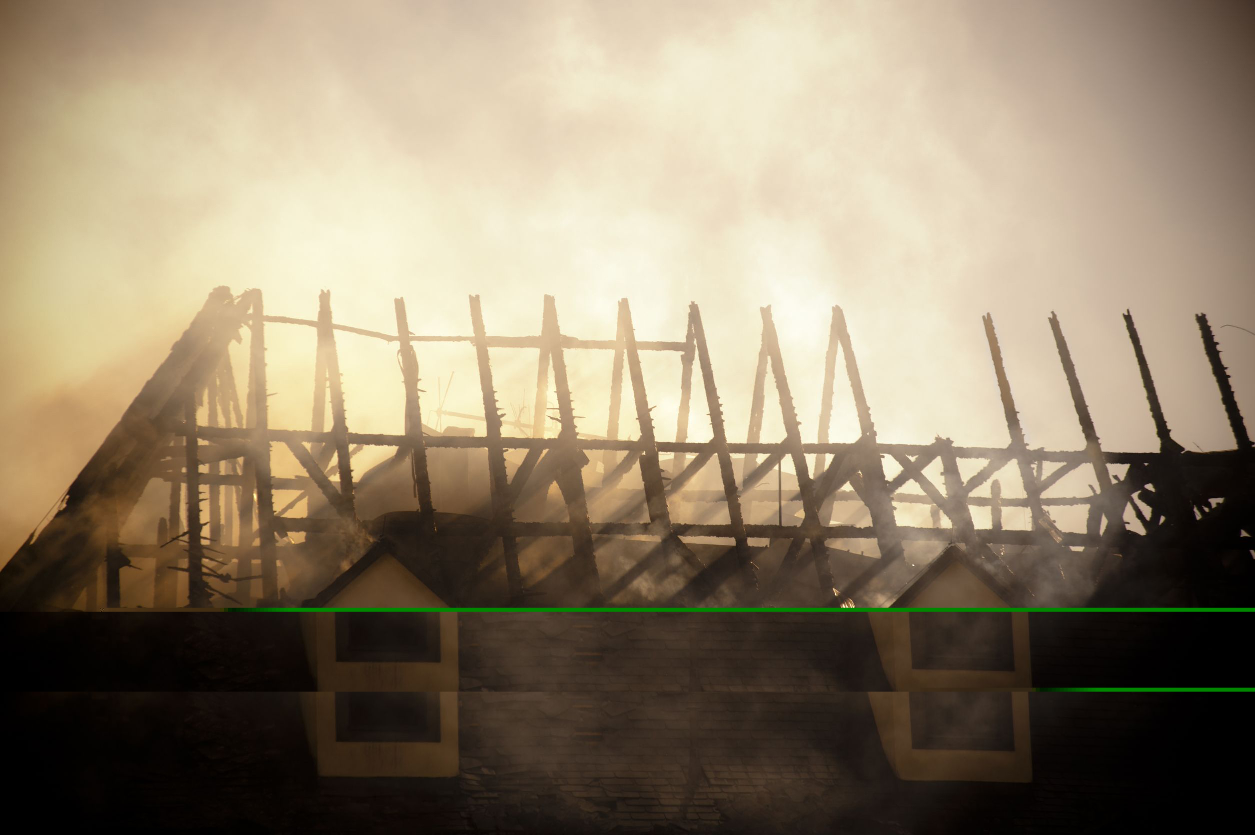 Smoke, flames, ash. A fire engine with lights and siren blaring, and uniformed officers yelling orders as a building blazes nearby.