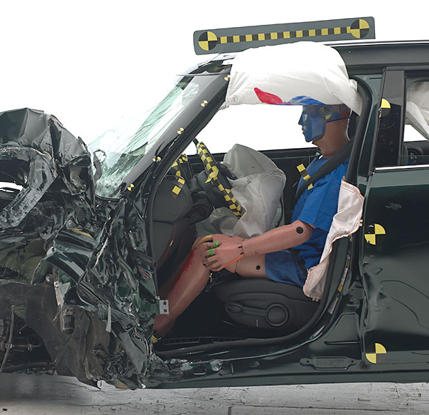 “The Mini Cooper Countryman gave a solid performance,” said Joe Nolan, the Institute’s senior vice president for vehicle research. “The Countryman’s safety cage held up reasonably well. The safety belts and airbags worked together to control the test dummy’s movement, and injury measures indicate a low risk of any significant injuries in a real-world crash this severe.”