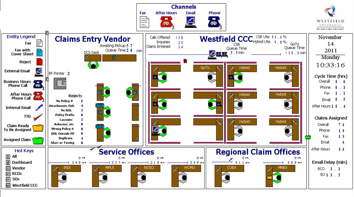 Westfield leadership wanted to shift the majority of claims reporting from faxes to phones, thus providing greater and more accurate detail about the claim and an opportunity for direct and positive interaction between the customer and company. In order to accomplish the shift, leadership needed to better understand this change and how many representatives would be needed to handle the additional calls.