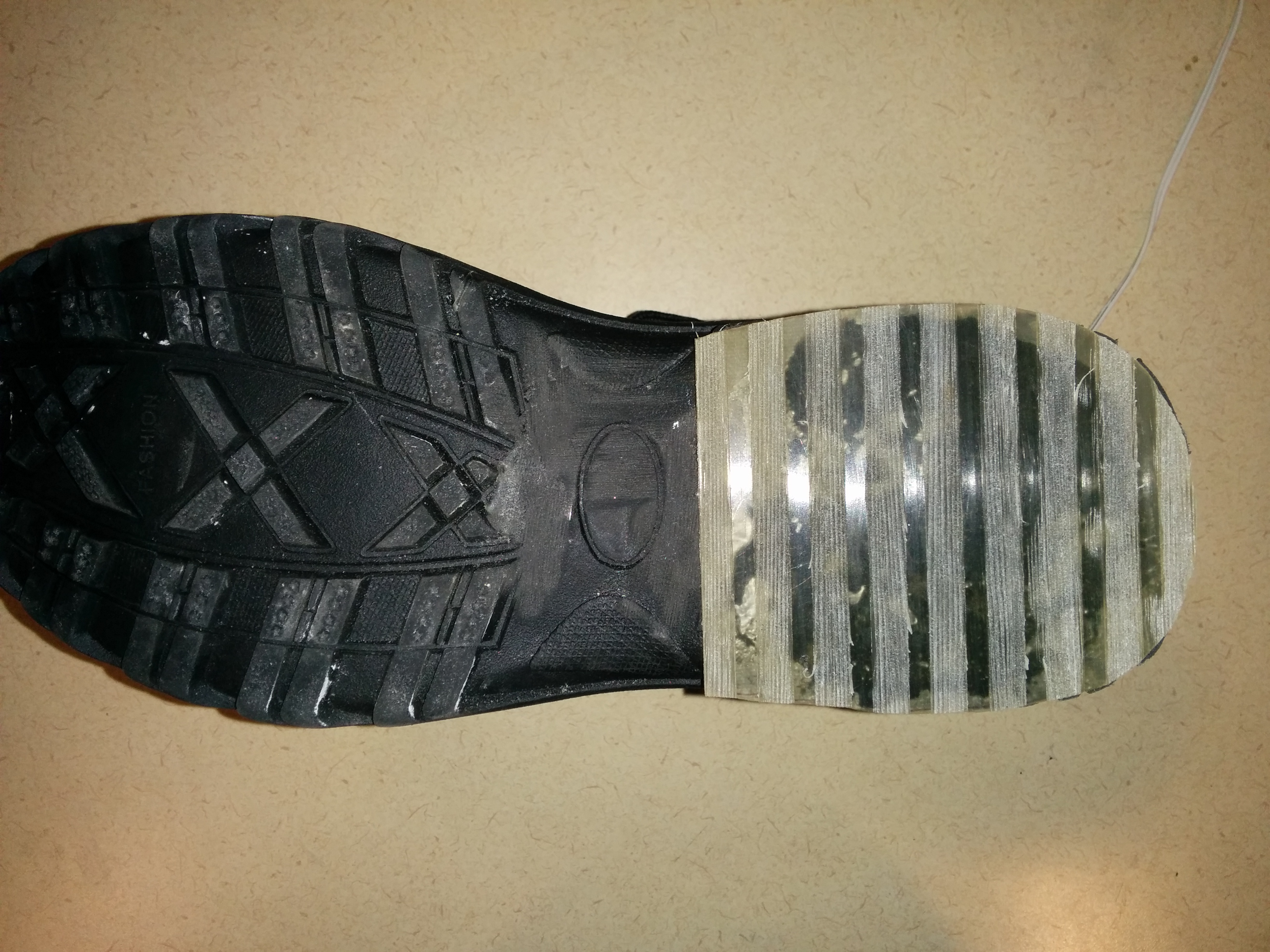 The material looks like regular rubber and will stretch and deform in similar ways, said Rizvi. The material also performs just as well as regular rubber on dry surfaces such as quarry tile, he added. But on ice the rubber-glass fiber composite provides significantly better traction.