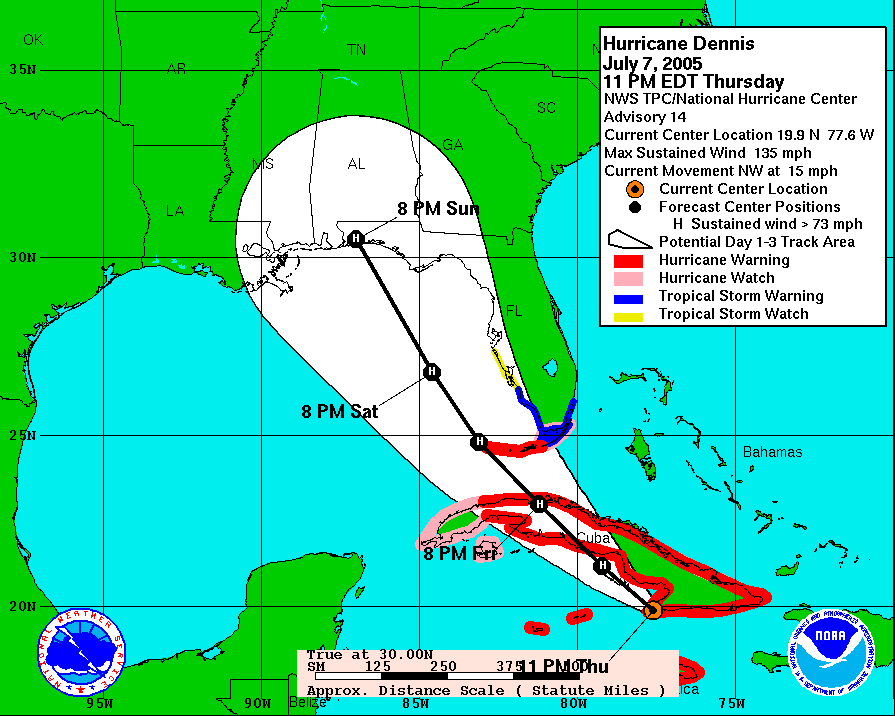 - Hurricane Dennis was designated a category 3 storm;