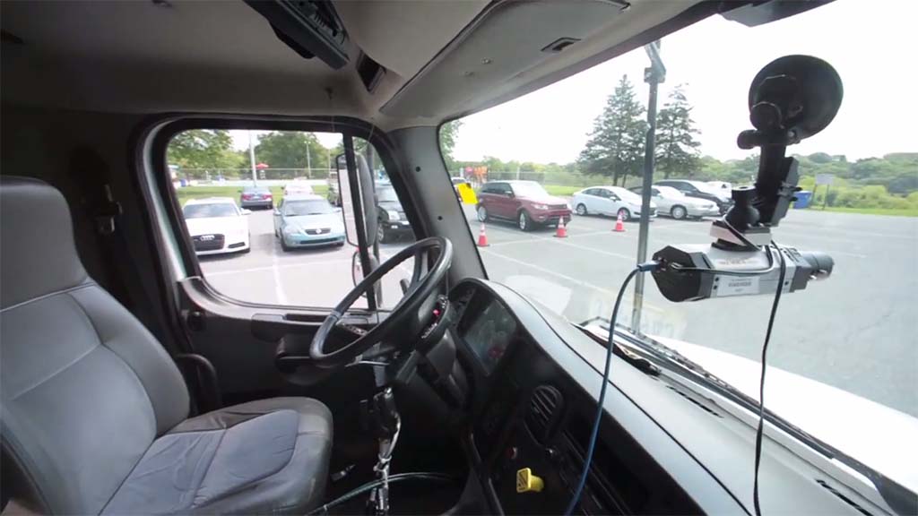In Monday’s demonstration, a lead truck beamed information to Royal’s attenuator truck. The crash truck followed the lead truck around the parking lot of Bethlehem’s municipal swimming pool, perfectly mimicking its movements, speed and braking.