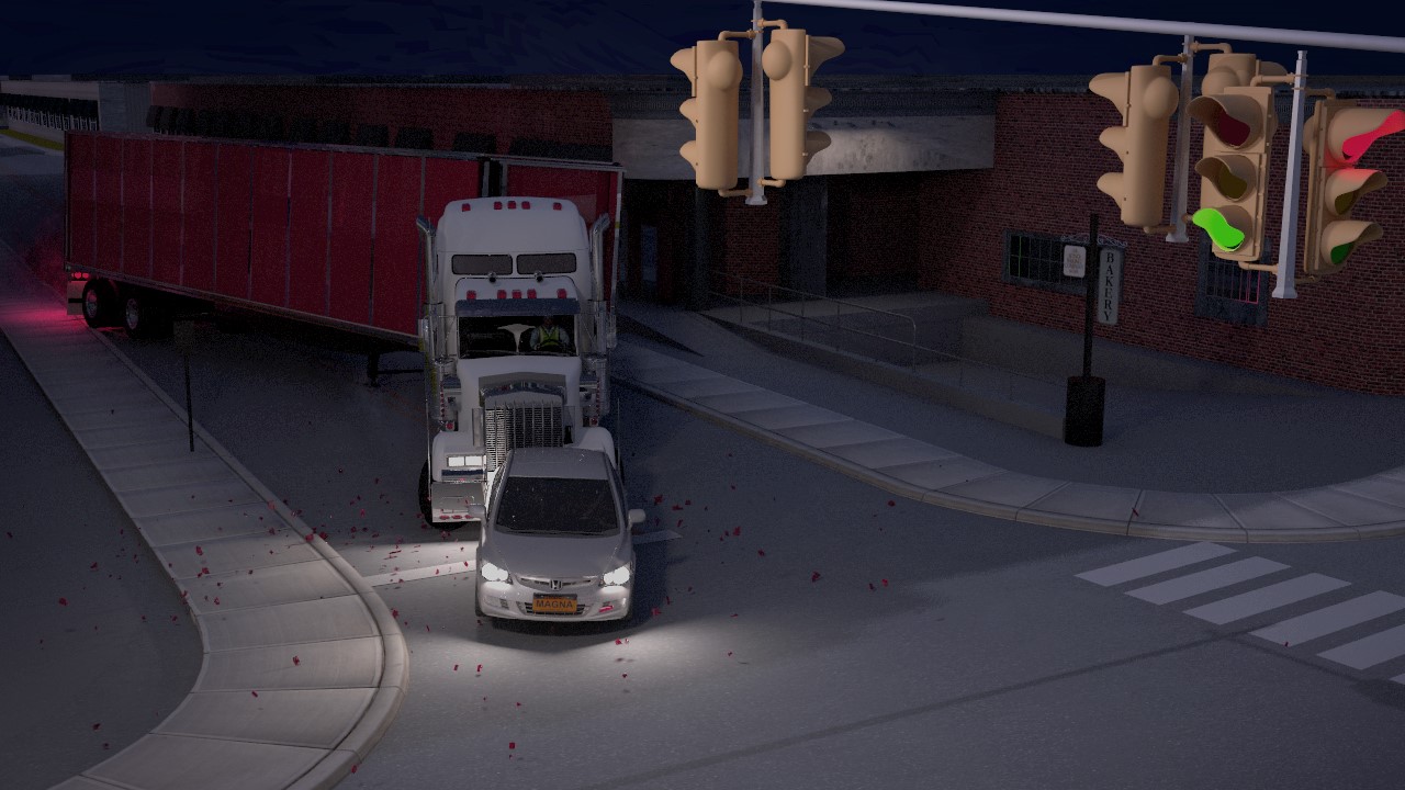 Depending on the goal of the animation, other views such as satellite overviews or side angles might be the more effective option in depicting the accident.