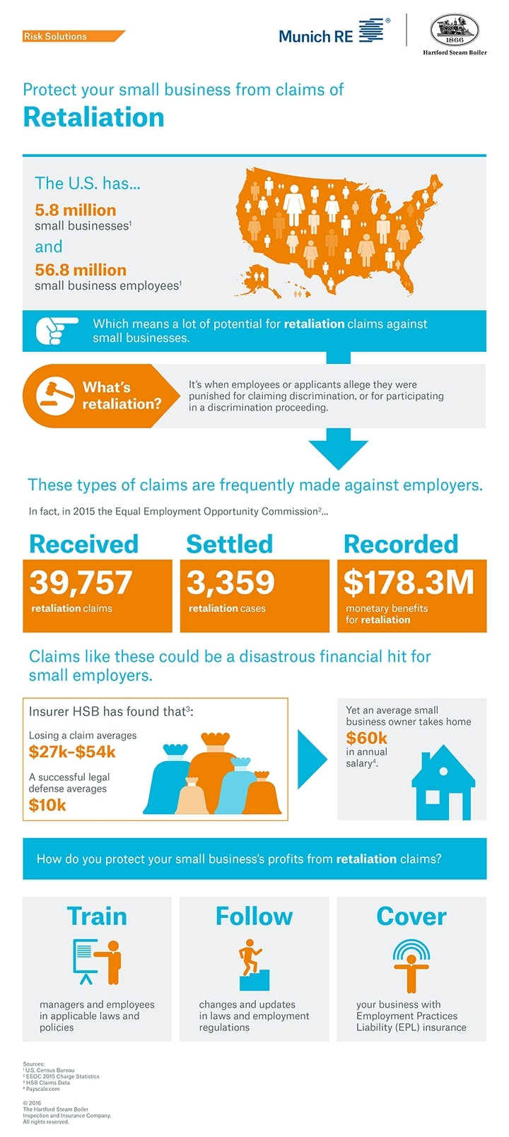 In its latest report for 2015, the U.S. Equal Employment Opportunity Commission (EEOC) said it received 39,757 retaliation claims and recovered $178.3 million in monetary benefits from employers. Many smaller businesses paid penalties and settlements.