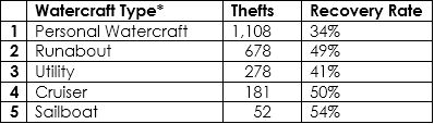 The top five types of watercraft stolen were: