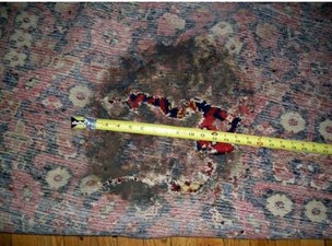 That said, damage to rugs can be difficult to see in images. A shadow may be misperceived for a water stain. Taking good inspection notes as well as pointing to areas of damages with a finger or pen and measuring areas of damage by showing a ruler or measuring tape in photos to highlight specific areas is extremely helpful.