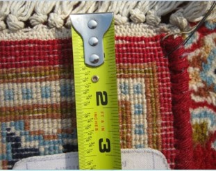 The best way to record a rug’s knot count is to take a photo of the back side of a rug with a ruler or measuring tape along a row of knots in two directions, parallel to the fringe and perpendicular to the finished edge. A rug’s knot count can range from as little as 15 to as many as 2,500 a square inch.