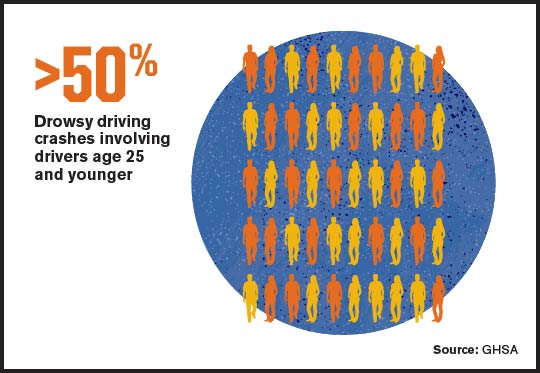- Teens and young adults – The report notes that only 30 percent get enough sleep. When drowsy, teens are reportedly more likely to text and drive and drink and drive.