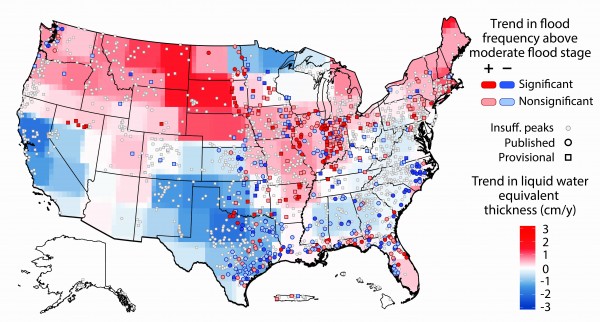 UI engineers Gabriele Villarini and Louise Slater compiled water-height information between 1985 and 2015 from 2,042 stream gauges operated by the U.S. Geological Survey. They then compared the data to satellite information gathered over more than a dozen years by NASA’s Gravity Recovery and Climate Experiment (GRACE) mission showing “basin wetness,” or the amount of water stored in the ground.