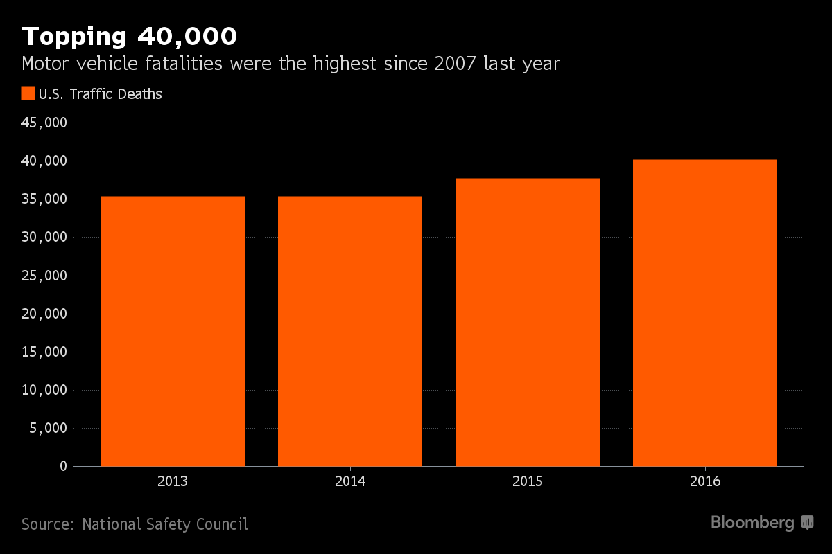 Roadside fatalities last year hit 40,200, a 6 percent gain from 2015 and up 14 percent from 2014, according to the group. The trend reflects similar findings by the National Highway Traffic Safety Administration, which in January reported an 8 percent rise in deadly crashes in the first nine months of 2016 compared to the prior-year period.