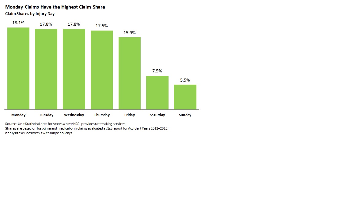 The report also noted a slightly higher number of lost time claims reported on Mondays.