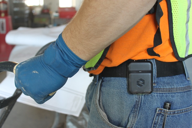 More than 130 employees will use the Spot-r Clip, a device worn on a worker’s belt, while at the New York job site.