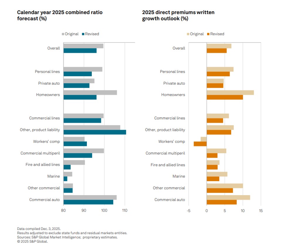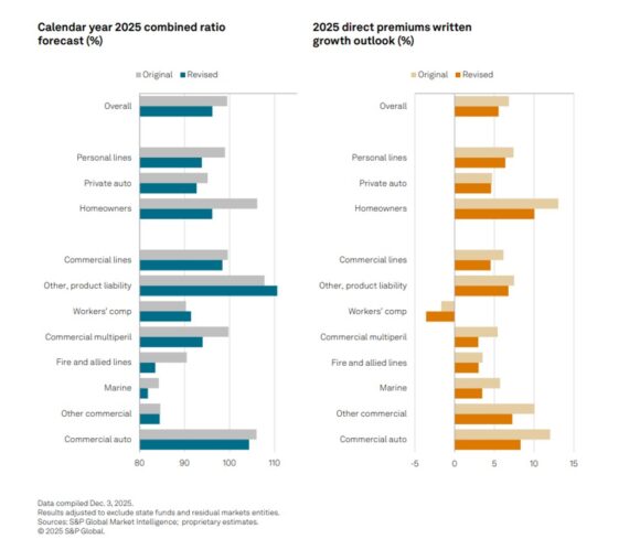 Still, while their 2025 projected combined ratio across all lines is now 96.2, three points better than a midyear projection of 99.2 estimated for the year in August, “success is anticipated to be temporary due to various market dynamics and challenges,” S&P GMI said in a December media statement.