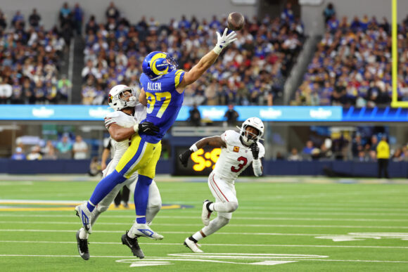 Top photo: The Arizona Cardinals play the Los Angeles Rams at SoFi Stadium on Jan. 4. Photographer: Sean M. Haffey/Getty Images.