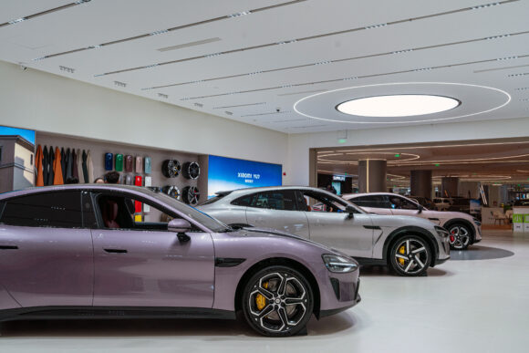 Top photo: Xiaomi Corp. YU7 electric vehicles displayed at one of the company’s stores in Beijing.