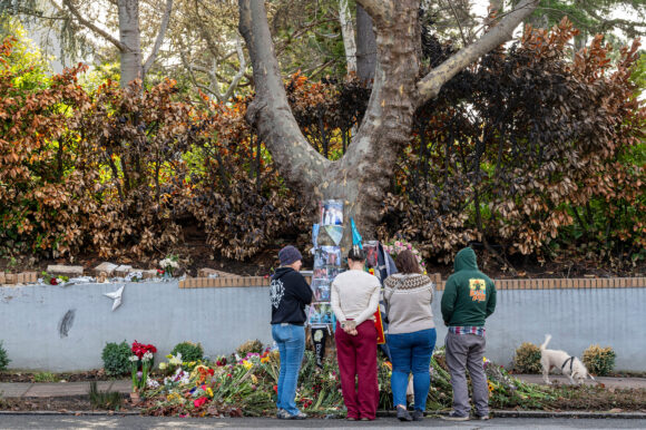 Top photo: A memorial for three college students who died in a Cybertruck crash in Piedmont, California.