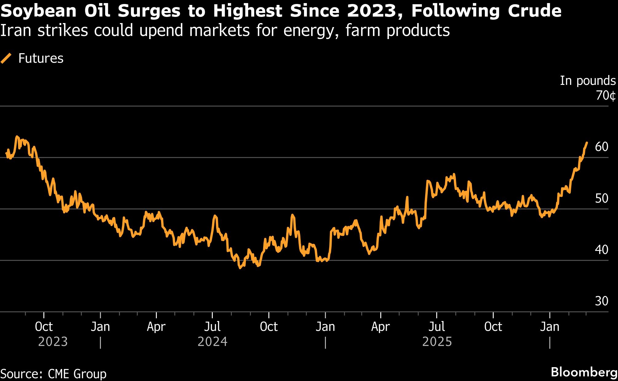 Agriculture traders rushed to adjust positions with the escalating conflict in Iran threatening to disrupt supply chains from corn and soybean meal to fertilizer and sugar.