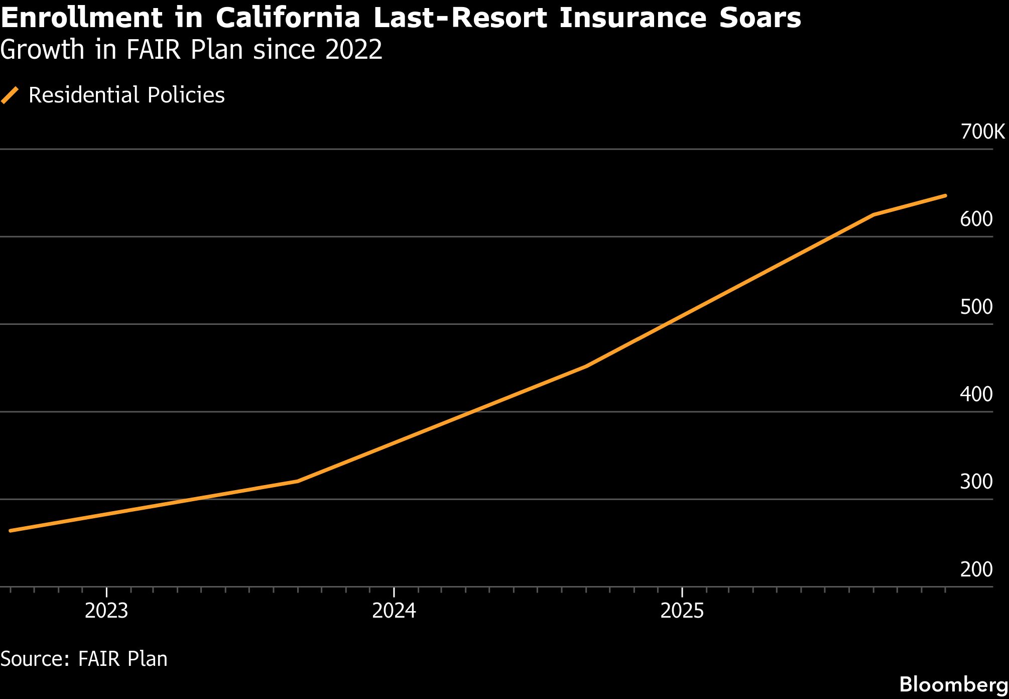 But in a sign insurers have curtailed coverage even in places less likely to face wildfires, 14% of current FAIR policies are for properties largely in urban zones with low fire risk, according to a Bloomberg News analysis of FAIR plan data, with 28% of the cash-strapped plan’s exposure now in those areas.