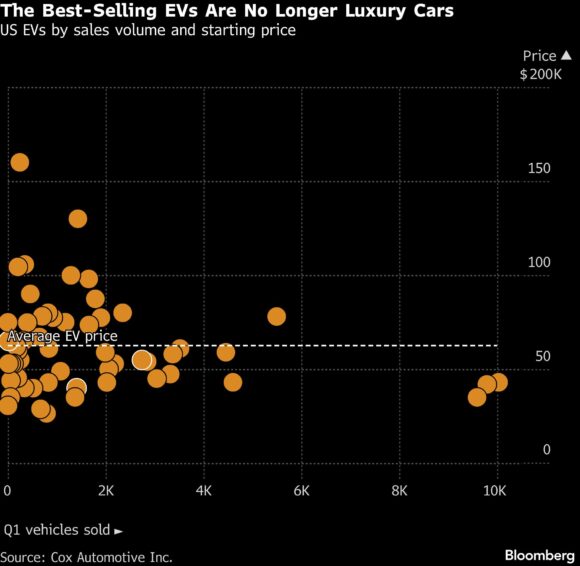 Indeed, Tesla Inc.’s Model Y, the most-popular EV in America notched a 23% increase in first-quarter sales, compared to the year-earlier period. Toyota Motor Corp. saw demand nearly double for its bZ, an electric SUV that starts at $43,000, a price well below the average price of a gas-powered car these days. And Americans snapped up almost 10,000 of Hyundai Motor Co.’s Ioniq 5 in the first quarter, a 14% increase from a year ago.