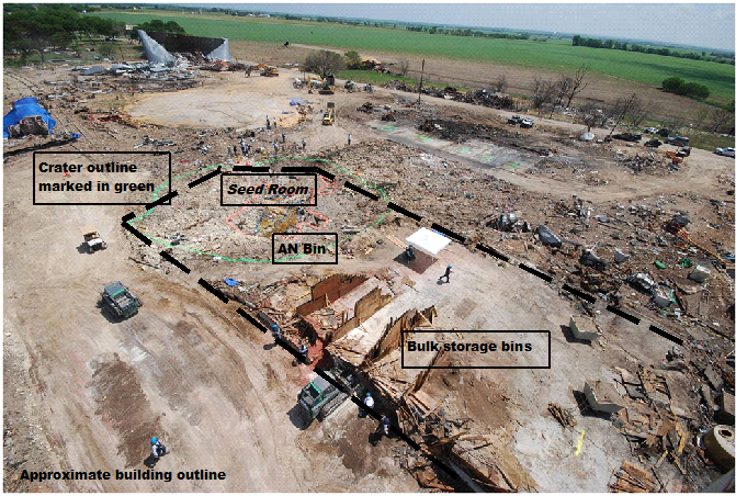 The fire involved a 12,000 square foot wood frame seed and fertilizer building at the West Fertilizer Plant, known as the Bulk Processing Plant, which had no fire resistance rating. The Uniform Fire Code wasn’t published until 1971 after the building’s construction sometime in the 1960’s.