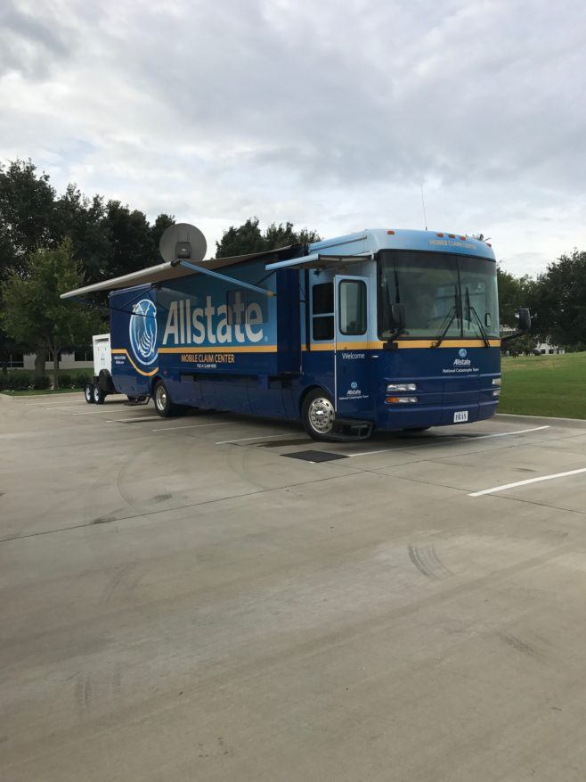 By Monday, Allstate had tweeted one of its Mobile Claims Centers was staged in Austin, waiting for the all clear to deploy.