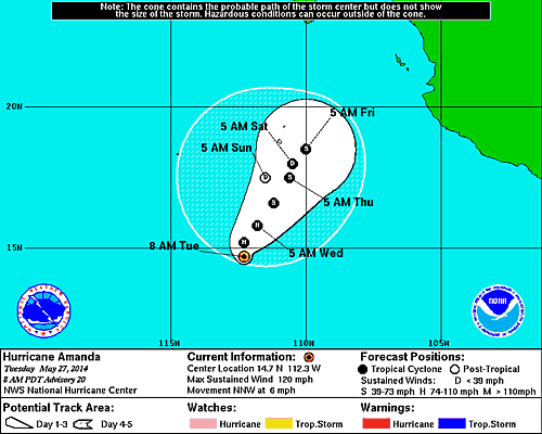 While Amanda was forecast to stay out to sea, Mexico’s National Meteorological Service said rains associated with the storm were likely to drench much of western and central Mexico.
