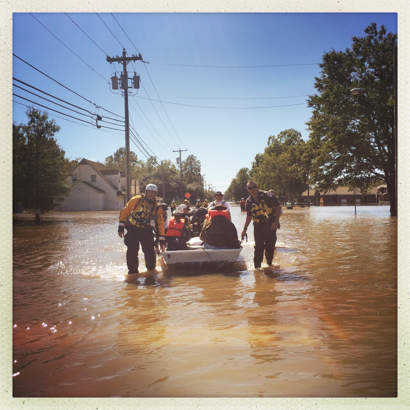 The half-dozen men from the nearby town of Rayham spent about 10 hours Monday at the rescue work aboard their truck – usually used for fighting brush fires in this swampy, rural southeast corner of North Carolina. They primarily located and ferried to safety rescued residents in inflated dinghies or bass boats to meet the truck on this neighborhood’s main street.