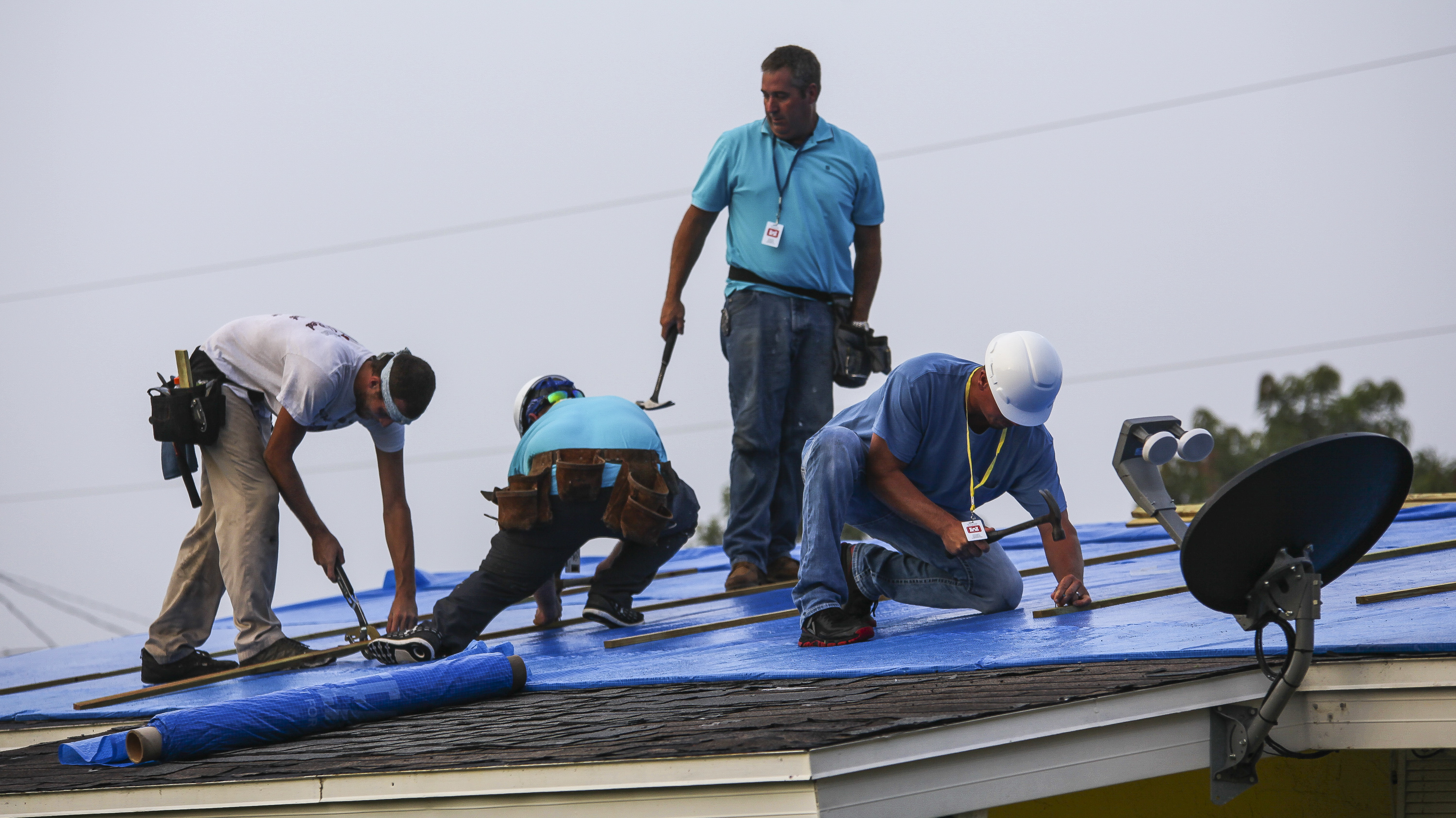 Temporary tarp installed on roof requiring repairs after Hurricane Irma. Photo by Robert Kaufmann – Sep 30, 2017