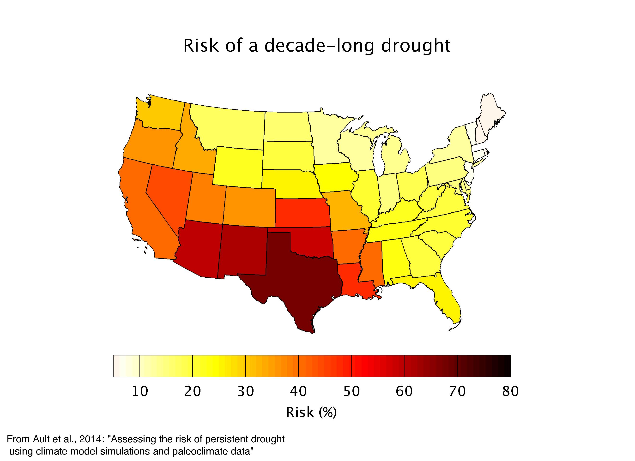 Ault said that the West and Southwest must look for mitigation strategies to cope with looming long-drought scenarios. “This will be worse than anything seen during the last 2,000 years and would pose unprecedented challenges to water resources in the region,” he said.