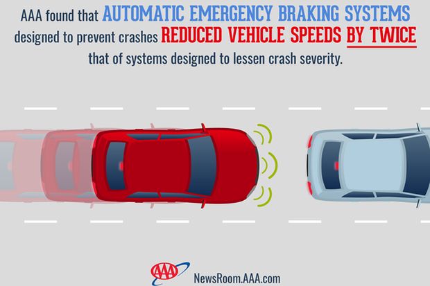 “Automatic emergency braking systems have the potential to drastically reduce the risk of injury from a crash,” said Megan McKernan, manager of the Automobile Club of Southern California’s Automotive Research Center. “When traveling at 30 mph, reducing speed by just 10 mph can reduce the energy of crash impact by more than 50 percent.”